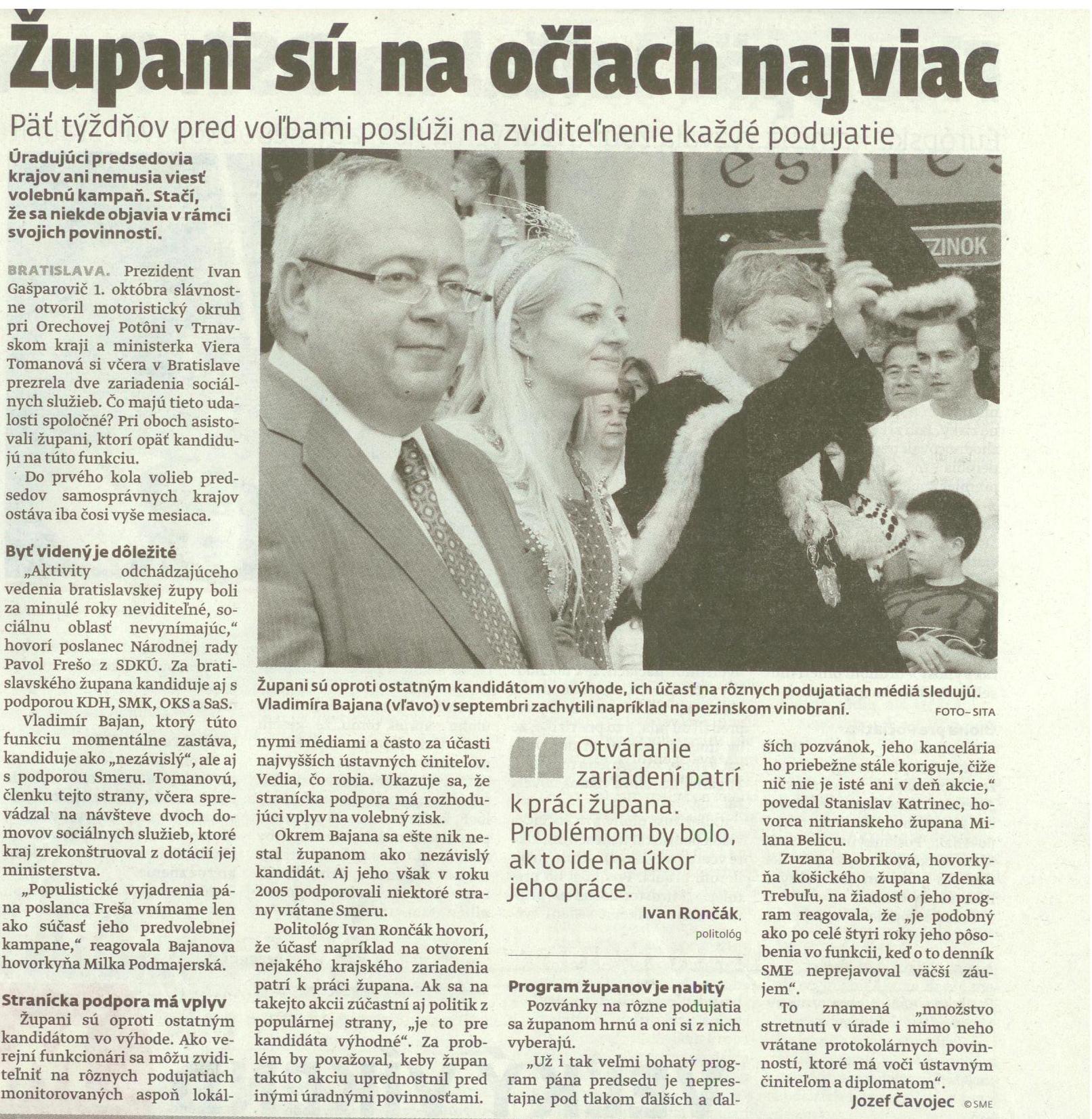 Ak mal niekto pochybnosti, že existuje nejaký župan Bajan, dnešným dňom si mže byť istý, že existuje. V sprievode ministerky práce, alias E.T. navštívil včera zopár svojich sociálnych zariadení.